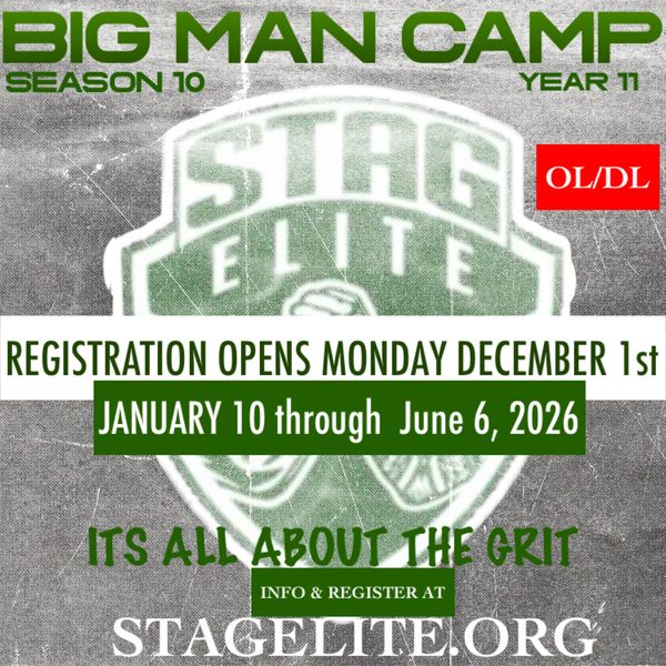 Stag Elite is a year round program that provides an off season Big Man Camp, Girls Flag Football, and Youth Football & Cheer in which we emphasize on Good Health, Mental Wellness, and the importance of Academics for Success.